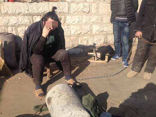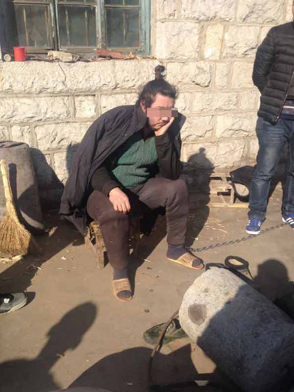 张学文,男,39岁。初次见到张学文的人会以为这是一位在修炼的道士,束发于头顶,盘坐在凳上;仔细一看双眼无神、嘴中自言自语、脚腕锁有铁链,“道士”被锁了?为何?