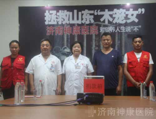 7月23日下午两点,济南神康医院举行了以“拯救山东木笼女”为主题的公益活动,并现场宣布成立“微信远程会诊平台”。在活动仪式上,济南神康医院全体医护人员为“木笼女”夏莉容捐款,并邀请京鲁名医连通会诊,为其下一步的治疗商定方案。