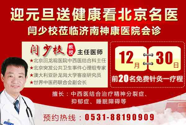 对于久治不愈的精神疾病患者来说,济南神康医院专家团队正在借助“京沪鲁精神科名医会诊平台”,向疑难精神疾病患者抛出了多学科专家团队的橄榄枝,京沪鲁专家的强强联合,也增强了患者的治疗信心。元旦来临,为了解决广大患者“看病难,看名医更难”的问题,2017年12月30日,济南神康医院再次特邀闻名全国的北京精神科名医闫少校来院亲诊,满足患者的就诊需求。预约前20名患者还可享受免费针灸一疗程的优惠待遇,机会难得,欢迎广大患者提前预约报名。