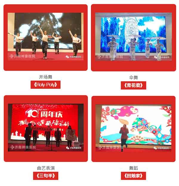 庆典晚会回顾总结了济南神康医院十年来取得的丰硕成果,描绘了医院今后的发展蓝图,对2018年医院的工作进行了部署,现场精彩的演出和互动,使整场活动气氛隆重而热烈。